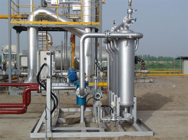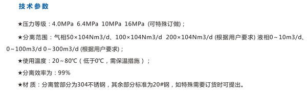 多管柱式旋流分離器主體是由多個(gè)單管并聯(lián),由環(huán)管圍成一圈而成,在環(huán)管和外圈單管之間均設(shè)有開關(guān)閥,可以根據(jù)壓力及分離氣量大小具體調(diào)節(jié),使其工作在最佳分離速度范圍,多管柱比單管的容積要大很多,液相在分離器中的沉降時(shí)間也得到延長。在分離器上裝有液塞捕集器和回液管,保證氣體的純凈度。分離裝置上裝有液位計(jì)和液相出口控制閥,可以手動(dòng)和自動(dòng)排液,具體工作過程如下: 氣-液混合流體先經(jīng)過環(huán)管再由環(huán)形管經(jīng)開關(guān)閥切向進(jìn)入分離器,經(jīng)分離器分離成氣相和液相,氣相部分經(jīng)分離器上端的液塞捕集器到匯管出口處流出裝置,液相部分由出口控制閥控制排出裝置。