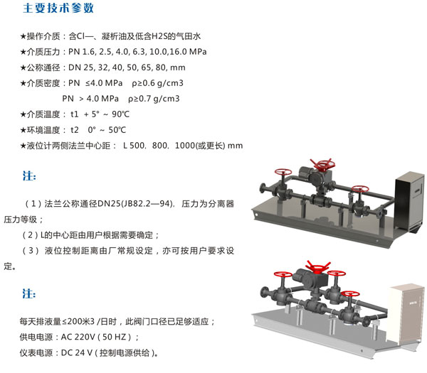 自控排液裝置是由于已有的天然氣井場分離器自控排液系統易出故障導致整個系統失靈而開發的第五代產品。本裝置的開發是“三結合”的結晶,充分匯合了管理干部、技術人員、井場操作工人的智慧和合理化建議,因而攻克了用現場天然氣作儀表氣源所引起的如腐蝕、堵塞等諸多弊端,達到長壽命無故障可靠運行。只要認真照章操作和維護,其故障率很低,即使發生一般故障,操作人員均能自行判斷和維修,恢復其正常運行。 使用本系統可提高天然氣井場、站的就地自動化水平,避免因人工操作不當造成的分離器翻塔或串氣,防止天然氣能源的大量損失和環境污染,有利于提高經濟效益和減輕操作人員的勞動強度。