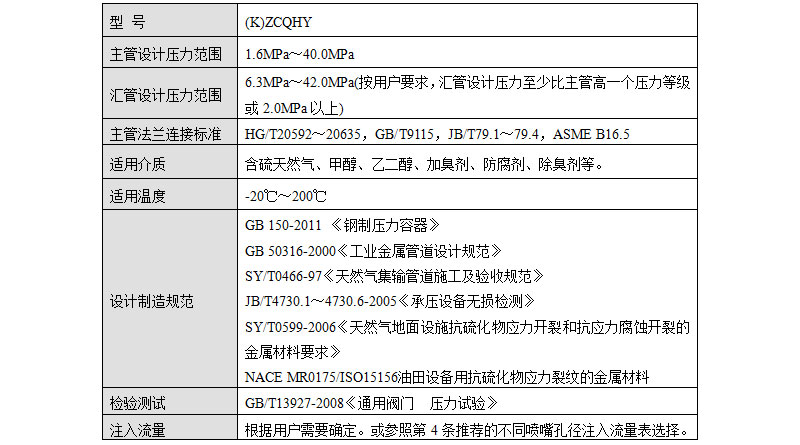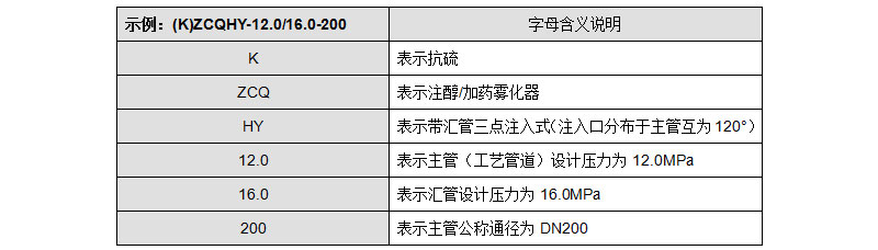 1.產品概述 在現有技術中,天然氣中的水氣不僅減少了管線的輸送能力和天然氣氣體熱值,而且易于天然氣中的CH4、H2S、C2H6等形成天然氣的水化物,這種白色結晶固體會增加管路壓降,甚至嚴重堵塞管道,威脅到天然氣氣井的安全。另外,天然氣中的硫化氫、二氧化碳等酸性氣體如溶于水,也會對輸送管道,儀表設備產生嚴重的腐蝕。因此,在天然氣生產中廣泛采用注入蒸發損失小、無毒、可重復使用的乙二醇等通過它直接向天然氣管道中注入,注醇霧化器就是一種在石油、化工輸送管道中或儲存管中注入防凍液、水化物抑制劑、脫水劑及消泡劑的裝置。 (K)ZCQHY系列注醇(加藥)霧化器是我公司為滿足天然氣、石油等行業防凍液和水化物抑制劑注入工藝而開發的新型產品。該裝置結構合理,霧化效果好。 (K)ZCQHY系列注醇(加藥)霧化裝置能有效使注入的防凍液和水化物抑制劑等液體化學物質充分霧化,與天然氣及石油均勻混合,能有效的防止冰堵和抑制水化物的生成。注入閥采用獨特的旋流型霧化噴嘴,設置起旋葉片和渦流室,結構緊湊,易于在線更換。噴嘴為硬質合金材料,特殊工藝制成,耐腐蝕、耐沖刷,使用壽命長。完全解決了傳統針型結構的注醇閥在操作過程中,霧化效果差, 液滴不均勻, 工作壓力高, 管線壓損和注醇閥磨損大等問題。本裝置主要用于石油、天然氣管道或容器注入甲醇、乙二醇等化學物質,也可用于其它各種液體需要霧化的場合,如:加入消泡劑、除臭劑、防腐劑、加臭劑 等。該產品廣泛用于石油、天然氣、化工、電力、環保、食品、醫藥、輕紡、軍工等行業。 2.型號說明