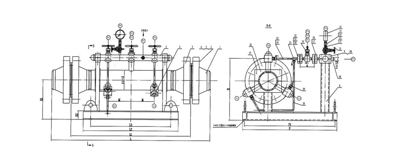 (K)ZCQHY型注醇/加藥霧化器安裝結構圖 1、對焊法蘭 2、雙頭螺柱 3、螺母 4、八角環墊(或纏繞式墊片) 5、霧化器主管 6、注入閥 7、注醇匯管 8、支撐座 9、壓蓋 10、內六角螺釘 11、取樣截止閥 12、正反絲接頭 13、墊片 14、正反絲螺母 15、墊片 16、壓力表 17、螺紋法蘭 18、透鏡墊 19、高密封法蘭截止閥 20、雙頭螺柱 21、螺母 22、平墊圈 23、角式接頭 24、直通連接管組件 25、O形圈 26、壓蓋 27、內六角螺釘 28、角式連接管組件一 29、角式連接管組件二 30、進液接口 7.主要部件型號及材質