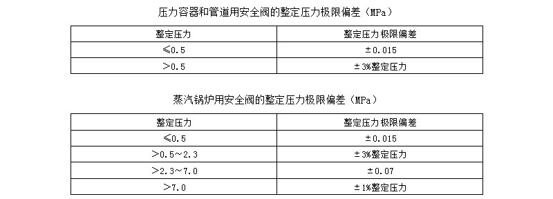 注:GB/T 12243-2005《彈簧直接載荷式安全閥》整定壓力偏差規(guī)定: