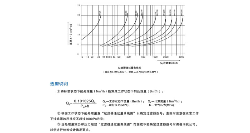 5. 使用說明 5.1根據工作壓力、處理量、工作溫度及介質成分選用合適的過濾器型號、濾芯材料和公稱通徑。 5.2過濾器剛使用時是干凈的新濾芯,一般情況下壓損△P較小,在額定流量以內不超過160毫米水柱(1600Pa)。若使用后壓損增至500毫米水柱(即5000Pa),說明過濾器需清洗或更換新濾芯。 工作的最大壓損由工藝確定,本設備的最大工作壓損為2500毫米水柱(25000Pa)。 5.3當介質較臟時應在本過濾器前安裝分離器或粗過濾器,以延長濾芯的清洗周期。如工作狀況下達 到本設備的額定流量,壓損△P相應增加。建議至少三個月應清洗一次。 6.訂貨須知 訂貨時請提供以下條件: 6.1用途和使用介質; 6.2過濾器型號和公稱通徑; 6.3最大工作壓力和工作溫度; 6.4在標準狀態下的處理量; 6.5 其他特殊要求。