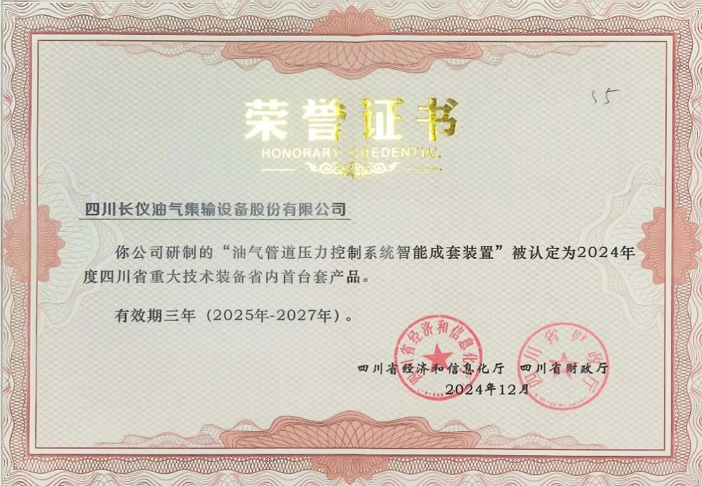發展“加速跑” 以“首臺套”之力撬動市場 四川長儀油氣集輸設備股份有限公司自主研制的“油氣管道壓力控制系統智能成套裝置”,2024年12月被省經信廳、省財政廳認定為四川省重大技術裝備首臺套產品。