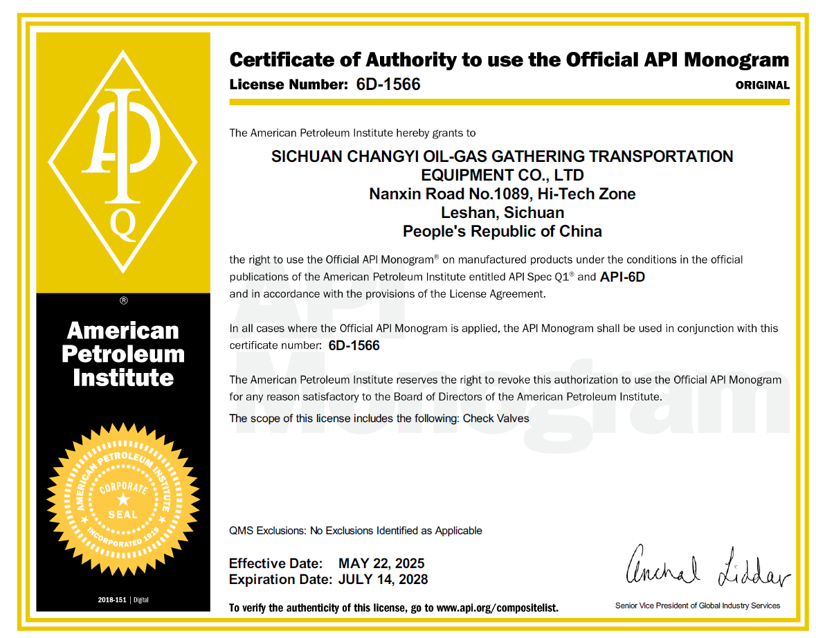 四川長儀股份公司深耕油氣行業裝備研發制造30余年,一貫重視新產品研發和管理體系建設。公司在現有ISO質量、環境、職業健康安全、測量管理、GJB軍標、核工業、兩化融合、能源管理、綠色工廠,歐盟CE、俄羅斯海關聯盟EAC等體系認證的基礎上再獲兩項API產品認證,進一步踐行企業創新品質、服務客戶、服務社會的綠色發展理念。后續將積極參與國際市場,助推企業高質量發展,服務國家工業經濟建設。